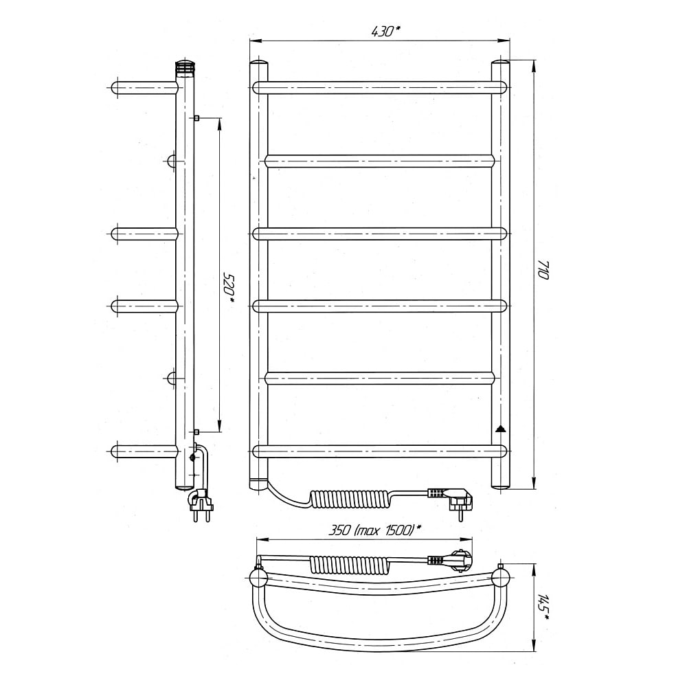 Електрична рушникосушарка Laris Єврофлеш П6 400 х 700 Е S3 (підкл. зліва)